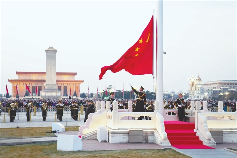 1月1日晨,北京天安门广场举行隆重的升国旗仪式。