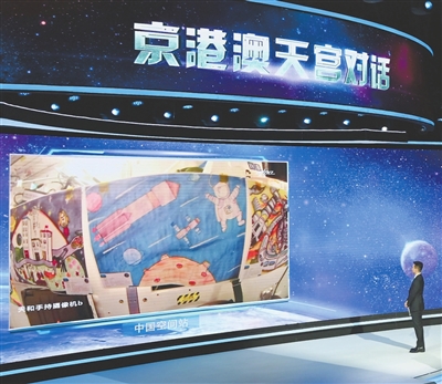 这是中国空间站首次举办天宫画展。在当天举行的“元旦京港澳天宫对话”活动中,神舟十三号航天员乘组对绘画作品进行了现场展示和介绍。