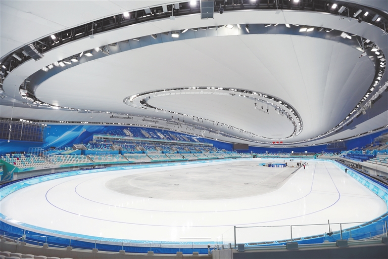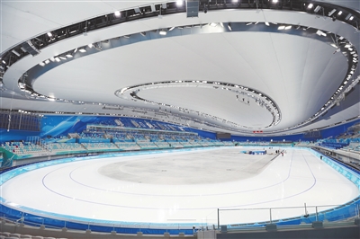 历经多年科研攻关,国家速滑馆“冰丝带”近日正式建成智慧场馆。基于“超级大脑”等技术,场馆在硬件运维、服务保障方面呈现诸多科技亮点。据悉,国家速滑馆将高标准服务于北京冬奥会赛时保障,同时也着眼于场馆长期可持续经营。冬奥会结束后,科技亮点纷呈的“冰丝带”将面向公众开放。图为2021年12月26日拍摄的国家速滑馆内景。新华社记者 程婷婷摄
