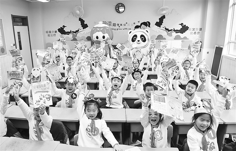 1月4日,在太原市新建路小学,小学生们展示自己闯关答题的成绩单。临近期末,山西省太原市不少学校采用闯关达标等形式进行期末测评,将语文学科的认读与背诵、积累与运用、阅读与表达,数学学科的口算与口答、说理与动手操作等融入无纸化闯关游戏之中,寓学于乐。 新华社记者 柴 婷摄