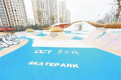 作为南昌华侨城·欢乐象湖第二个面世的子产品,运动公园占地总面积约5.46万平方米,在充分展示区域独特人文和生态景观系统的基础上,围绕潮流运动、休闲健身、体育训练、生态休养、绿色游园等方面,规划布局“一环五区”,涵盖健身环形慢跑道、设备运动区、足球运动区、篮球运动区、极限运动区、滨河休闲区,并以设计创意类型的运动设施为主,为南昌各年龄段人群提供公共开放的运动健康生活空间,满足人们随想随动的健身需求。