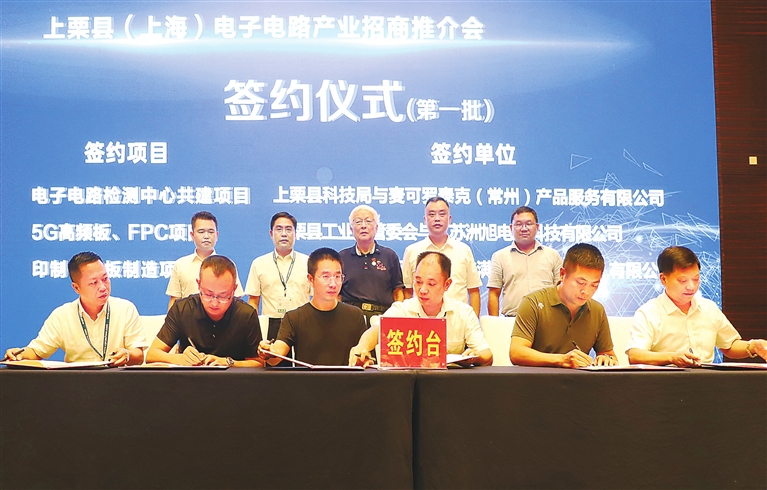 上栗县与湖南省浏阳市签订共建跨省产业园合作协议,新建成43万平方米标准厂房,完成金山变(供)电路改造、综合污水处理厂、电子电路研发(检测)中心、赣湘合作人才大厦等配套设施建设。紧盯粤港澳大湾区、长三角、长株潭以及东南沿海等重点区域精准招商,以举办电子电路产业(上海)推介会等方式,新签约项目55个,签约总金额276.4亿元,其中“5020”项目共7个。