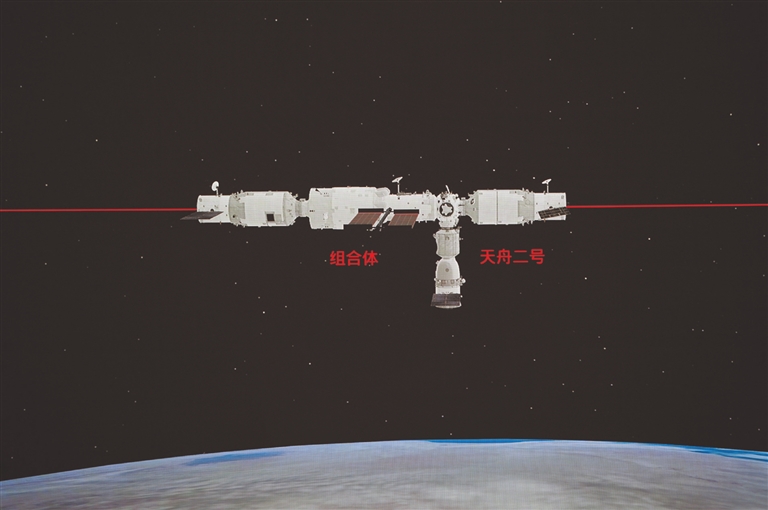 试验开始后,天舟二号货运飞船从核心舱节点舱前向端口分离,航天员通过手控遥操作方式,控制货运飞船撤离至预定停泊点。短暂停泊后,转入平移靠拢段,控制货运飞船与空间站组合体精准完成前向交会对接。