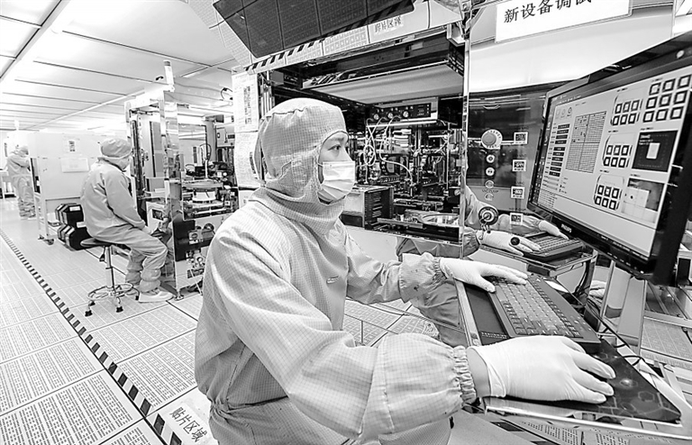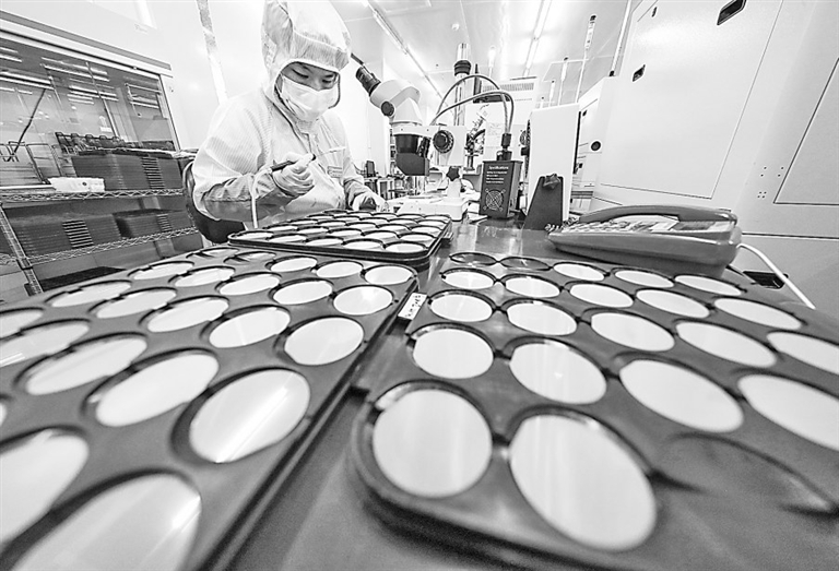 图3 观察蒸镀、取片样检……连日来,位于萍乡市安源区工业园的江西圆融光电科技有限公司开足马力生产LED外延片和芯片赶订单,一片热火朝天的生产景象。林 巧摄