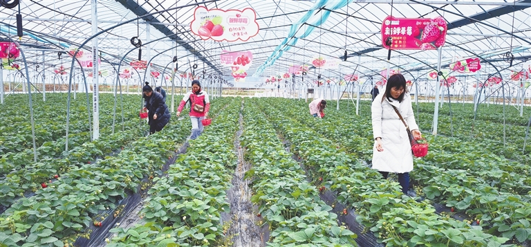 新年伊始,在贵溪市雷溪镇溪望田野生态农业基地,记者看到,笔直的观光线路两旁保温大棚鳞次栉比,花果长廊游客络绎不绝,葡萄园中一垄垄秧苗翠绿欲滴,草莓园内,游客或拍照留念,或体验种植乐趣,深冬的农场呈现出一派红火的景象。很难想象,两年前,这里却是一个田地荒芜、杂草丛生的废弃葡萄园。