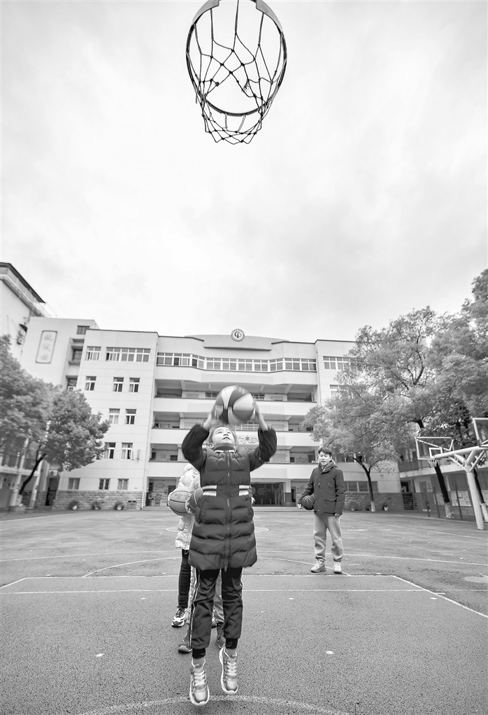 2月7日,南昌市城北学校的学生在老师指导下进行投篮练习。“双减”政策落地的首个寒假,城北学校启动特色托管服务,开设篮球、编程、美术、舞蹈等互动课程,并结合冬奥赛事的现场直播,普及体育竞技知识,让孩子们度过一个多彩的快乐寒假。本报记者 徐 铮摄