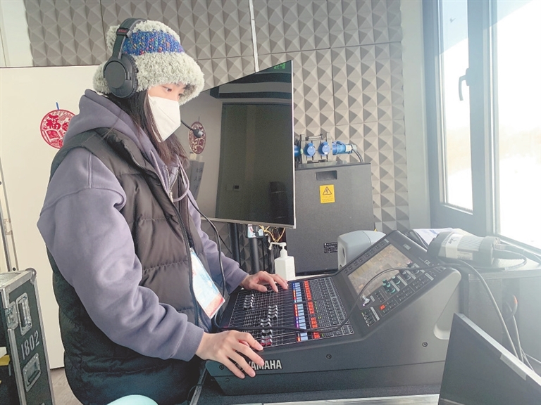 活跃现场气氛,让观众们能够感受到冬奥会的热烈与奔放,这是体育展示团队通力合作呈现的效果。当冬奥赛事正式打响,李康玥头戴耳麦,手指上下推动音响均衡器,成了她的工作日常。“每场赛事运动员之间的比拼像是在战斗,我们体育展示团队也如同作战,每个流程环环相扣,大家高度紧张。”李康玥告诉记者,所有音响设备音量并非一成不变,根据现场效果需随时调整。