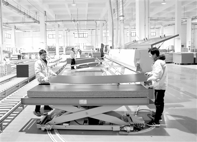 2月17日,在位于黎川县家具产业园的江西奥上新材料科技有限公司车间内,工作人员正在生产线上有序作业,赶制订单,冲刺首季开门红。