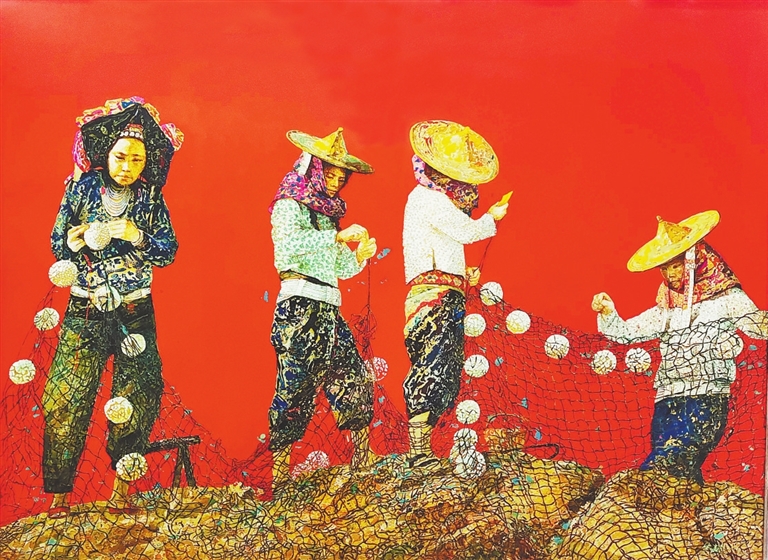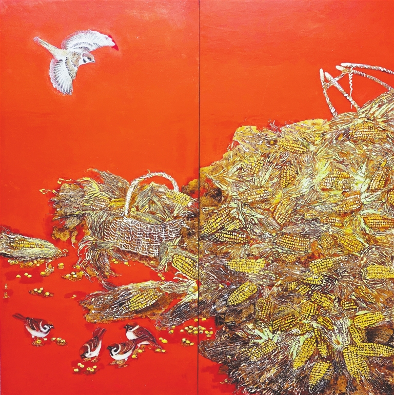 如今的漆画艺术,正呈现百花齐放、推陈出新的发展势头。在技法上,除了以天然大漆为主要材料外,蛋壳、贝壳、石片以及金银箔、金银粉等各种材料综合运用的技法越来越纯熟,表现手法越来越多样,甚至借鉴其他相近美术门类的技法,与综合材料绘画有跨界的趋势;在作品题材上,通过独特视角,运用符合当代人审美的新图式,反映人民群众火热的生活,弘扬主旋律,讴歌新时代。在本次展览的作品中,这些方面都得到较好的体现。