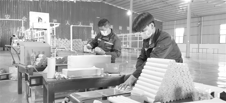 3月16日,江西美源艾草种植有限责任公司内,员工正在加工生产艾灸棒。近年来,新余市渝水区姚圩镇建设高品质艾草示范基地,大力发展艾草产业,全力打造热敏灸小镇。 本报记者 徐国平摄