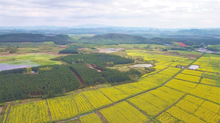 春分时节,在上高县徐家渡镇九峰景区,沿线万亩油菜花迎春绽放,十分壮观。通讯员 王 潘摄