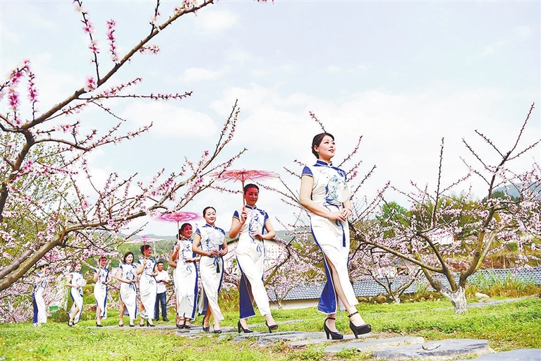 3月21日,宁都县旗袍协会在该县肖田乡小吟村上演了一场别开生面的旗袍秀。近年来,宁都县坚定不移践行“绿水青山就是金山银山”理念,大力发展农业特色产业,持续改善农村人居环境,加快推进美丽乡村建设,助力乡村振兴,打造新时代“五美”乡村,努力绘就新时代美丽乡村新画卷。黄梅芳摄
