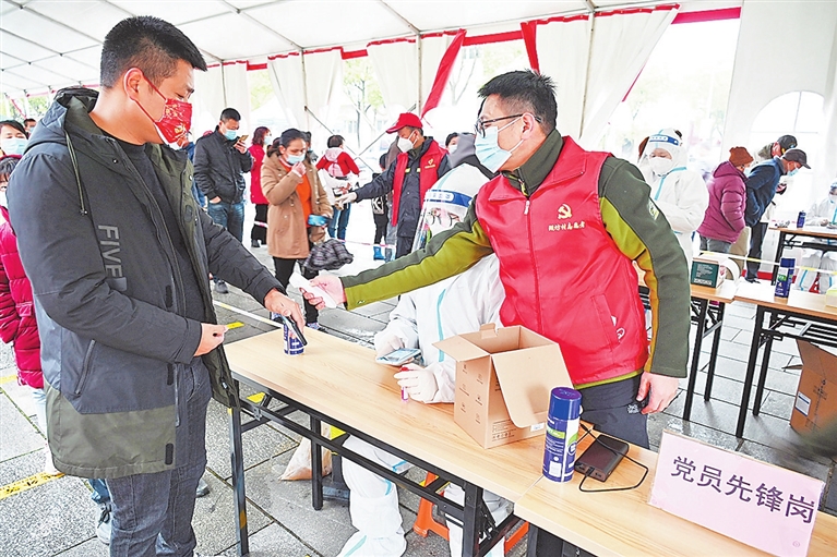 为全面配合做好全市第三轮全员核酸检测工作,南昌市青山湖区湖坊村全体党员干部听党指挥,第一时间投身一线,参与疫情防控工作;同时,发挥村党组织桥梁纽带作用,广泛发动辖区青年志愿者参与到核酸检测工作当中。工作人员在各自岗位开展秩序维护、扫码测温、信息录入采集、物资转运等工作。湖坊村党委书记魏斌带领大家发挥党员先锋模范作用,展现了辖区党员和志愿者的担当作为,为疫情防控贡献力量。陈 婷摄
