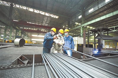为实现一季度开门红,方大特钢统筹抓好疫情防控和生产经营工作,针对现场生产特点制定疫情防控应急预案。目前,该公司按年初制定的目标组织生产,产能利用率处于较高水平。图为方大特钢轧钢厂优特钢生产线工作人员在检查螺纹钢产品质量。