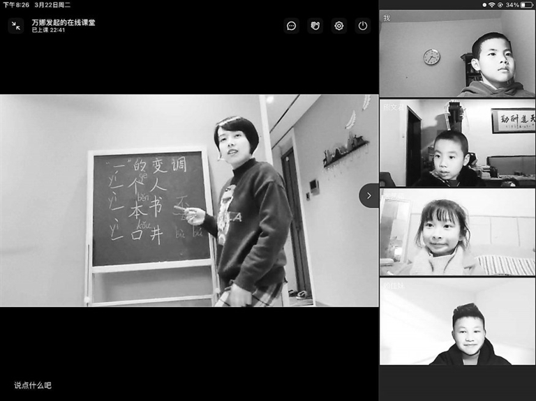 根据疫情防控要求,3月22日,南昌市阳明学校学生在家中通过视频上课。通讯员 尚 艳摄