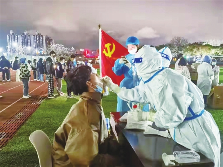 江西外语外贸职业学院发挥基层党组织战斗堡垒和党员先锋模范作用,5小时完成1.2万余人次首轮核酸检测工作。欧阳竞慧摄