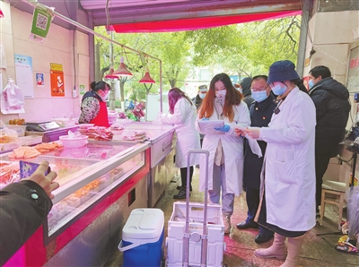 4月6日上午,像往常一样,南昌市西湖区市场监督管理局工作人员万润泉等人在抚河西农贸市场出入口设立了“你点我检”快检台,群众在此可以点出自己购买或者希望抽检的食品品种,请工作人员现场抽样检测。