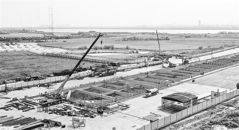 4月14日,在南昌轨道交通1号线东延工程瑶湖东站施工现场,工人正紧张有序地忙碌着。据了解,该工程线路全长4.3公里,共设有瑶湖东站和麻丘站两座车站。史港泽摄