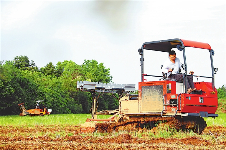 4月14日,奉新县赤岸镇城下村徐家组农民驾驶农机在田间劳作。春耕时节,该县石溪、东垦等地农民在做好疫情防控前提下,积极推进春耕生产。