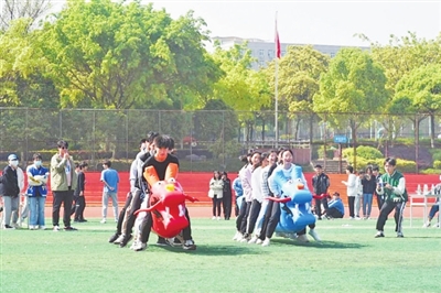 江西理工大学日前举办校园趣味运动会,号召在校生拒绝“躺平”,努力缓解疫情期间的焦虑情绪,提高身体素质,保持良好的抗疫自觉性和积极学习状态。甘运伟摄