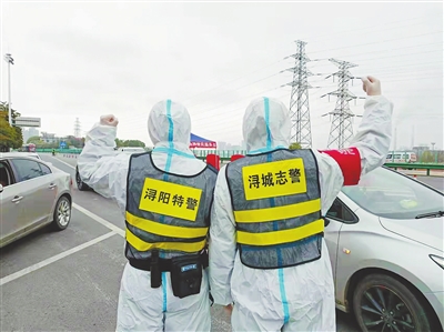 图❶在九江长江一桥核酸采样便民服务点,“浔城志警”与公安民警协作,引导司乘人员有序排队进行核酸检测。
