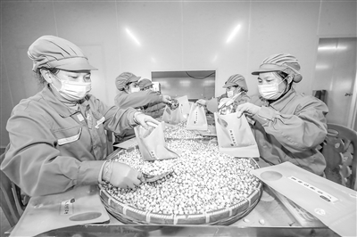 4月18日,在广昌县致纯食品股份有限公司生产车间,工人正在挑选和打包销往国外的广昌通芯白莲。该县立足“中国白莲之乡”特色产业优势,积极转变发展方式,大力推进绿色产业发展,助推乡村振兴。特约通讯员 曾恒贵摄