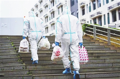 学院还腾空8层学生公寓和2栋培训公寓楼共200多个房间作为隔离房。每天早、中、晚,送餐小组队员身穿防护服,准时将食物放在隔离观察对象门口。他们不仅要为隔离区的学生配送餐饮及生活物资,还要负责隔离区的保洁工作。
