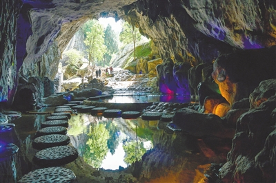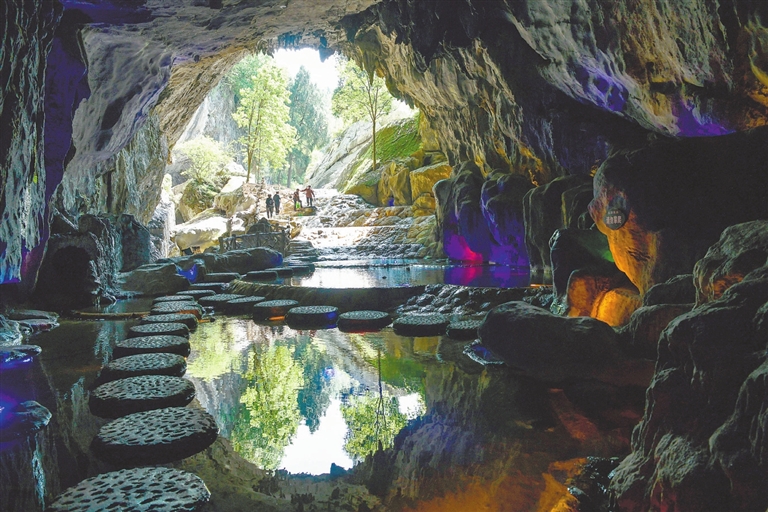游客在九道水景区游玩。