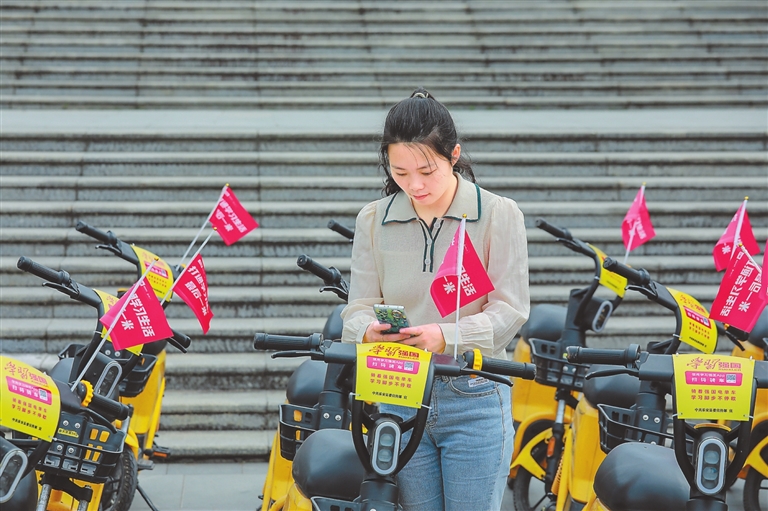 5月19日,抚州市首个“强国电单车”正式落地乐安县,市民可用“学习强国”APP扫码骑行。