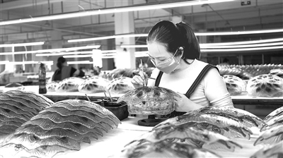 5月21日,分宜工业园区内的新余特艺工艺品公司生产车间,工人正加紧赶制发往欧美国家的玻璃雕花产品。分宜县围绕“强攻二季度、确保双过半”目标,出台政策扶持企业发展,加大惠企纾困力度,确保稳增长、稳就业、惠民生。通讯员 袁建兵摄