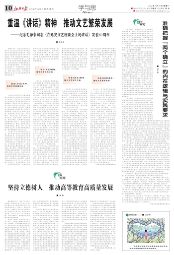 1942年5月,毛泽东同志亲自主持召开了由文艺工作者和中央各部门负责人参加的延安文艺座谈会。他在延安文艺座谈会上发表的《引言》和《结论》,合称《在延安文艺座谈会上的讲话》(以下简称《讲话》)。《讲话》作为毛泽东思想的重要组成部分,是我们党领导文化建设特别是文艺工作的重要里程碑,不仅将我国革命文艺推到了一个崭新阶段,也为我们今天的文艺工作提供了重要理论指南。重温《讲话》精神,对于繁荣发展新时代社会主义文艺有着积极而重要的现实意义。