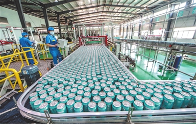 而该县工业园区则是另一番盛况。在致纯食品股份有限公司厂房内,一瓶瓶以莲为主要原料的饮料,正整齐有序地“走”下生产线。