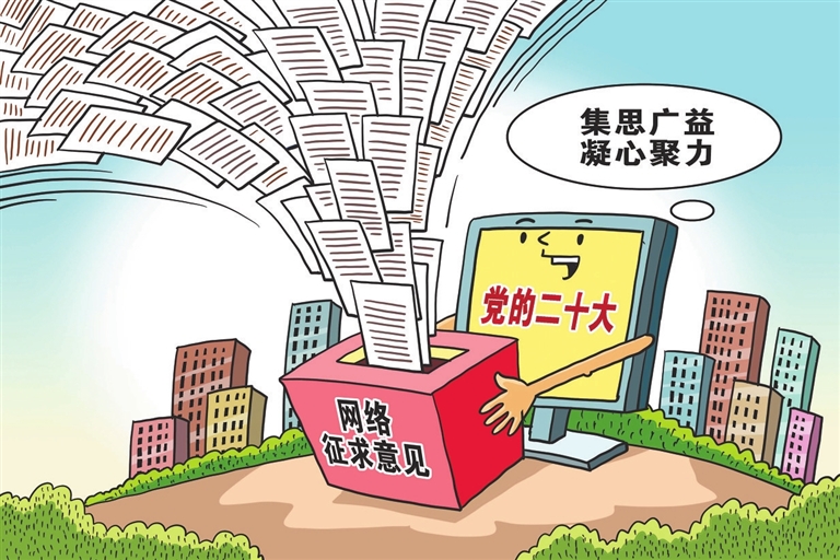 浓氛围,架起党和群众“连心桥”。通过网络公开征集关于党的二十大相关意见建议,既畅通了互动渠道,更是适应互联网时代新要求,密切党和群众关系的有益探索。开门问策、集思广益,拜人民为师、向群众学习,是党的优良传统,也是重要的工作方法。互联网时代,征集活动进高校、进地方、进智库、进社区、进村庄,不同地域、不同行业、不同年龄、不同性别的热心网民不断被吸引,积极加入到为党的二十大建言献策的行列。与此同时,在各大主流媒体网站、各类视频平台、各地党政机关和企事业单位官方账号里,关于此次征集活动的消息不停刷新。在海外社交媒体上,征集启动的消息同样吸引了众多华侨华人及友华人士踊跃参与。这一条条建议、一句句诤言的汇聚,有利于走好新时代网上群众路线、画好线上线下同心圆。
