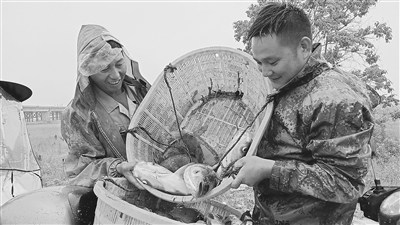 近日,余干县鹭鸶港乡沿湖村村民在池塘里捕鱼。近年来,当地调整养殖结构,实施“一水两用,一田双收”新模式,助农增收。
