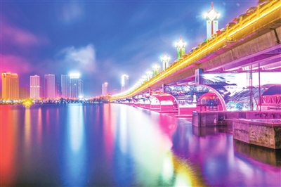 绿柳成荫、荷香袭人、蒲苇婆娑……仲夏的小城,华灯初上,漫步武宁县西海湾景区,楼宇、树影、游船,五光十色的霓虹,投映在清澈的湖水中,长水桥中桥大型壁画在绚烂变幻的灯光下美轮美奂,大型实景水上演出《遇见武宁》唯美浪漫,光影绰绰,如诗如画。
