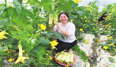 6月9日,在樟树市淦阳街道郭里王家蔬菜大棚基地,村民正在采摘丝瓜。近年来,该街道依托生态优势,以党建为引领壮大村集体经济,统筹推进蔬菜产业布局区域化、经营规模化、生产标准化、发展产业化。何淑敏摄