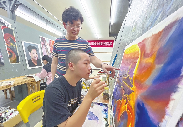 6月17日,在黎川县油画技能培训基地,老师正指导学员画油画。近年来,黎川县不断加大对油画产业发展的支持力度,建成占地面积35亩的油画创意产业园,并在园内设立油画技能培训基地,培养油画人才。史港泽摄