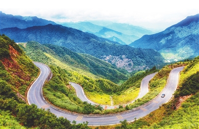 近日,玉山县怀玉乡玉峰村,车辆行驶在蜿蜒的公路上。玉峰村地处高海拔山区,红色文化资源丰富,自然风光秀丽怡人,直通山村的怀玉山公路,长达18.77公里,曲折层叠,被称为“天路”,不仅成了一道别样风景,而且带动了当地红色旅游、民宿产业的发展。本报记者 徐 铮摄