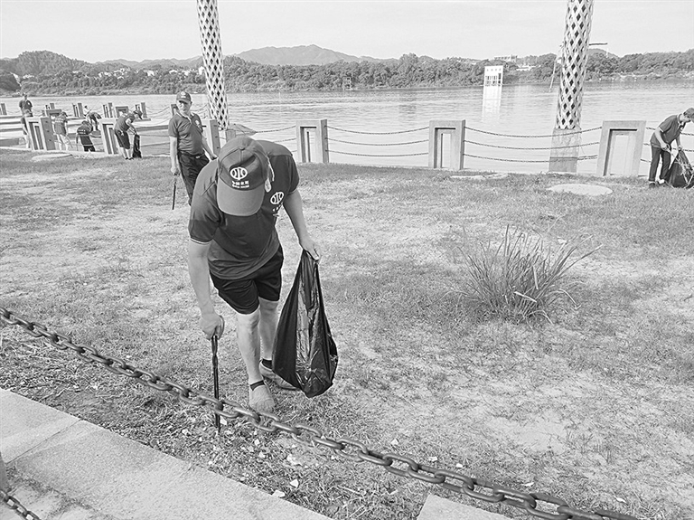 万安县水利局党员志愿者身穿蓝色服装,手拿工具,以县城十八颗柱子广场为起点,徒步沿着河岸捡拾垃圾、枯木、杂草,历时2个多小时,清扫河道3.2公里,并将50余袋垃圾统一处理。近年来,万安县水利局探索“河湖长+主题党日”,鼓励党员干部争当河湖长制工作的宣传者、参与者、推动者,共同守护万安水美家园,切实提升百姓幸福指数。郭 琴摄