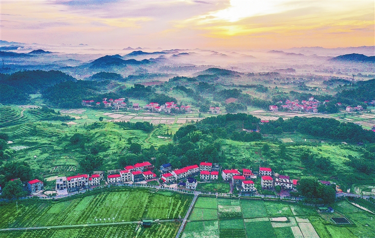7月5日,芦溪县银河镇紫溪村晨雾缭绕,群山连绵起伏,农田绿意盎然,红瓦民居、郁葱树木,秀美山村画卷令人沉醉。通讯员 邓建萍摄