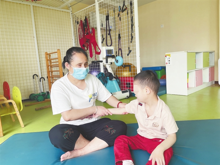 为孩子悉心服务的康复师