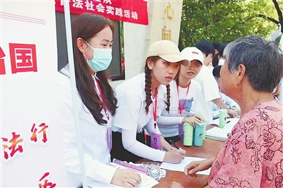 本报南昌讯(记者付强)近日,南昌职业大学人文学院联合安义县司法局等部门来到安义县向阳社区共同开展了暑期“三下乡”社区普法社会实践活动。活动通过现场法律援助、情景剧表演、有奖竞答、发放法律宣传册,入户宣讲等方式为社区500余居民传经送宝,通过简单易懂的普法形式,在帮助群众树立法律意识,推动了社区法治建设的同时,也提高了队员们自身的综合实践能力。