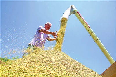 7月12日,在大余县池江镇池江村塔下组,村民正在抢收早稻。夏收时节,大余县早稻陆续进入成熟期,呈现一片丰收景象。