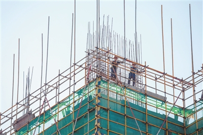 7月13日,在乐安县建筑工地上,工人们正冒高温赶进度。近日持续高温天气,该县建设单位及时发放防暑降温药品,合理安排工作时间,错时作业,稳步推进工程进度。 特约通讯员 黄 煜摄