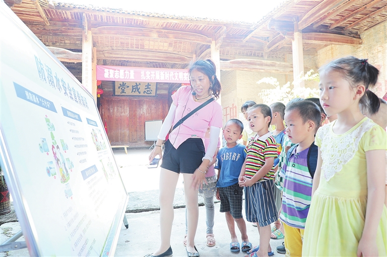 7月12日,吉安市青原区值夏镇志愿者对儿童进行防溺水宣传。为有效预防溺水事故发生,该区采取“七个一”举措,即下发一个通知,召开一次防溺水部署会,发送一封致农村留守儿童及其监护人的信,进行一次水域集中摸排,落实一项包保责任,走访一次留守儿童,开展一系列防溺水宣传,为儿童生命安全保驾护航。彭生苟摄