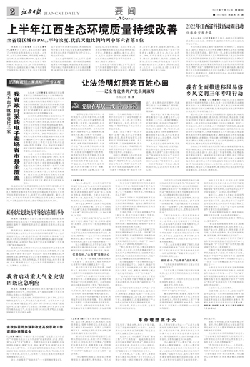 上半年江西生态环境质量持续改善