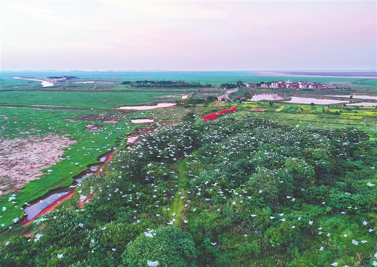 近日,在鄱阳湖南矶湿地国家级自然保护区,成千上万只鹭鸟聚集在湖区嬉戏觅食,把这里当成了天然食堂。