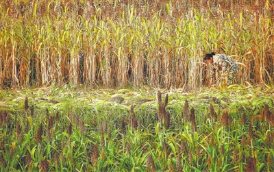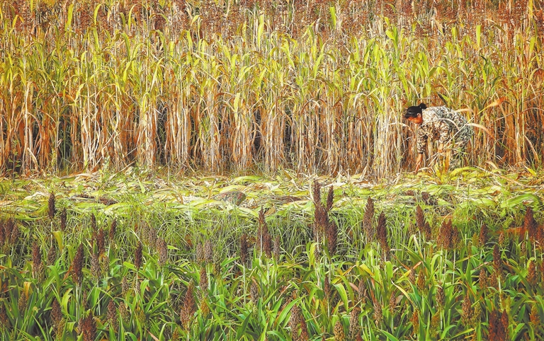 8月17日,吉水县尚贤乡桥头村,村民正在抢收高粱。当地通过土地流转,试验种植200余亩高粱。下一步,该乡将结合现代农业种植和传统酿酒工艺,把高粱种植、食品加工、农旅融合等产业向周边乡镇辐射,助力乡村振兴。