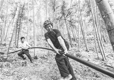 8月22日,资溪县陈坊林场职工在笋材两用林基地铺设管道。连续晴热天气危及毛竹林正常生长,该场组织党员干部职工铺设输水管道5300米,安装喷水龙头1000多个,通过山上引水自动喷灌系统为竹林“解渴”。