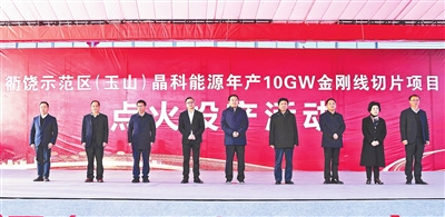 晶科能源在第一个8GW项目2月10日开工、7月9日投产的基础上,正在加快推进第二个8GW项目建设;江铜铜杆、新材料铸造两个项目8月26日顺利实现“双投产”;彩虹光伏玻璃项目主体厂房正在封顶,设备同步进场;蜂巢能源一期新增2GW软包电池加快安装设备,力争9月初投产,二期20GW全面开工建设……如今,上饶经开区在激活变量中提级增速,一个个重大产业项目如雨后春笋般拔节生长,正迸发出高质量发展的勃勃生机。